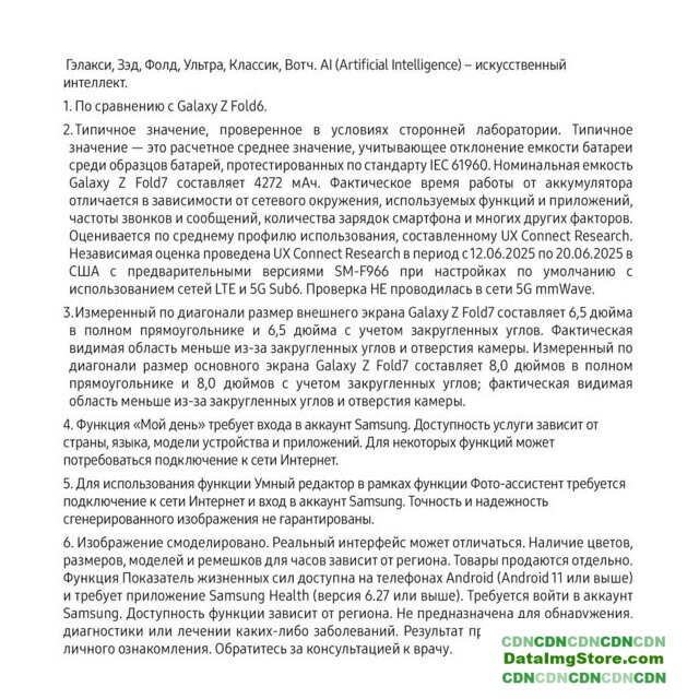 | Отличия от предыдущего поколения | ✅ В Galaxy Z Fold7 реализовано несколько инноваций, которые отличают его не только от Galaxy Z Fold6, но и от любого другого складного смартфона на рынке. Во-первых, широкие дисплеи как внутри, так и снаружи. Диагональ внешнего экрана теперь составляет 6.5 дюйма, а основной экран имеет впечатляющую диагональ 8 дюймов с более широким соотношением сторон, что обеспечивает более плавную работу в многозадачном режиме.✅ И хотя дисплеи стали больше, сам смартфон значительно уменьшился в размерах и стал более портативным, чем все предыдущие Galaxy Z Fold, как в сложенном, так и в раскрытом виде. В раскрытом виде его толщина составляет 4.2 мм, а в сложенном — 8.9 мм, что делает его примерно на 25% тоньше Galaxy Z Fold6.✅ В сложенном состоянии экран Galaxy Z Fold7 имеет соотношение сторон 21:9, аналогичное соотношению сторон у премиальных смартфонов моноблокового типа. Такое улучшенное соотношение сторон обеспечивает удобство и естественность набора текста, а также повышает производительность. |